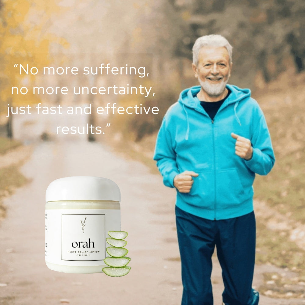 You know that moment. When the tingling and burning in your legs or feet start to flare up, just as you’re trying to sleep. You shift, stretch, or even get out of bed hoping it’ll ease. But it never really does. Orah was created for people like you. Who’ve had enough sleepless nights and just want their body to calm down again.